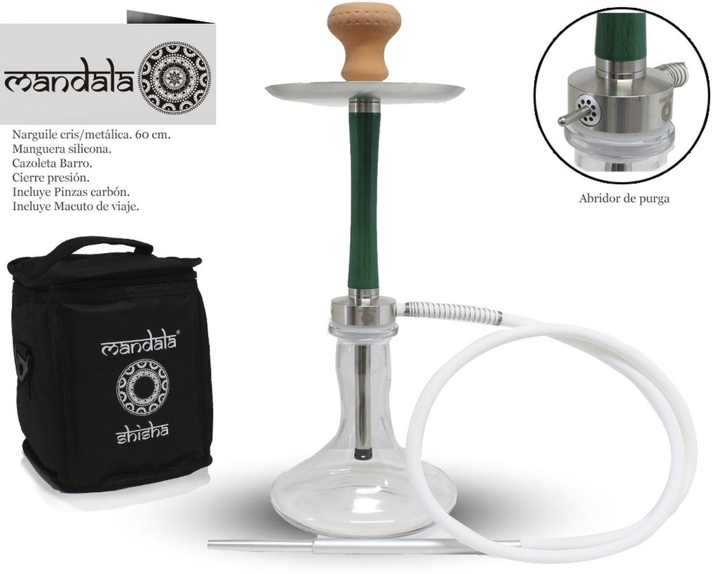 NARGUILE MANDALA Z-13 SILVER-GREEN 60CM 1MG + BAG
