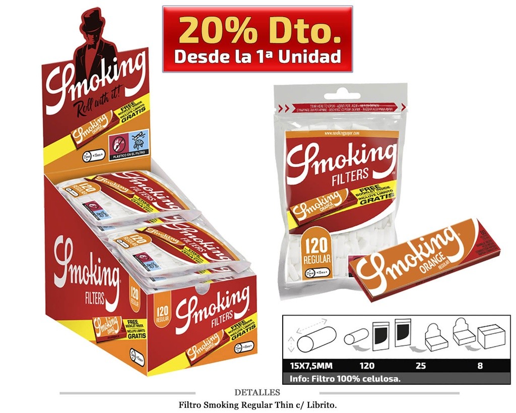 FILTRO SMOKING REGULAR THIN 7,5MM + LIBRITO 25X120 UDS