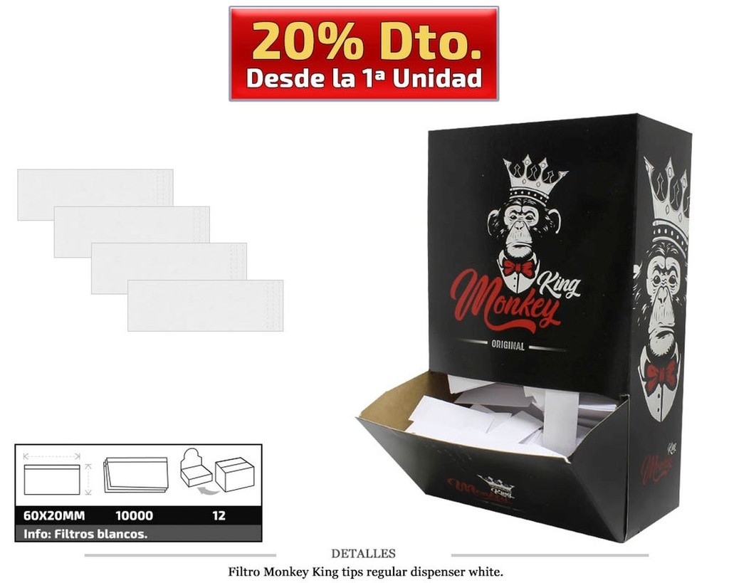FILTRO MONKEY KING TIPS DISPENSER WHITE 10000 UDS