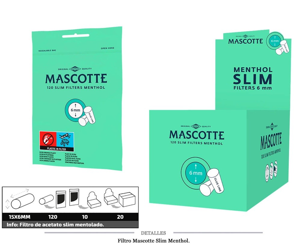 FILTRO MASCOTTE SLIM 6MM MENTHOL 10X120 UDS