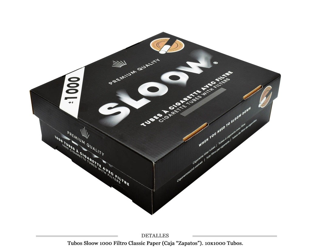 TUBOS SLOOW BLACK 1000 F. CLASSIC PAPER 10X1000 UDS