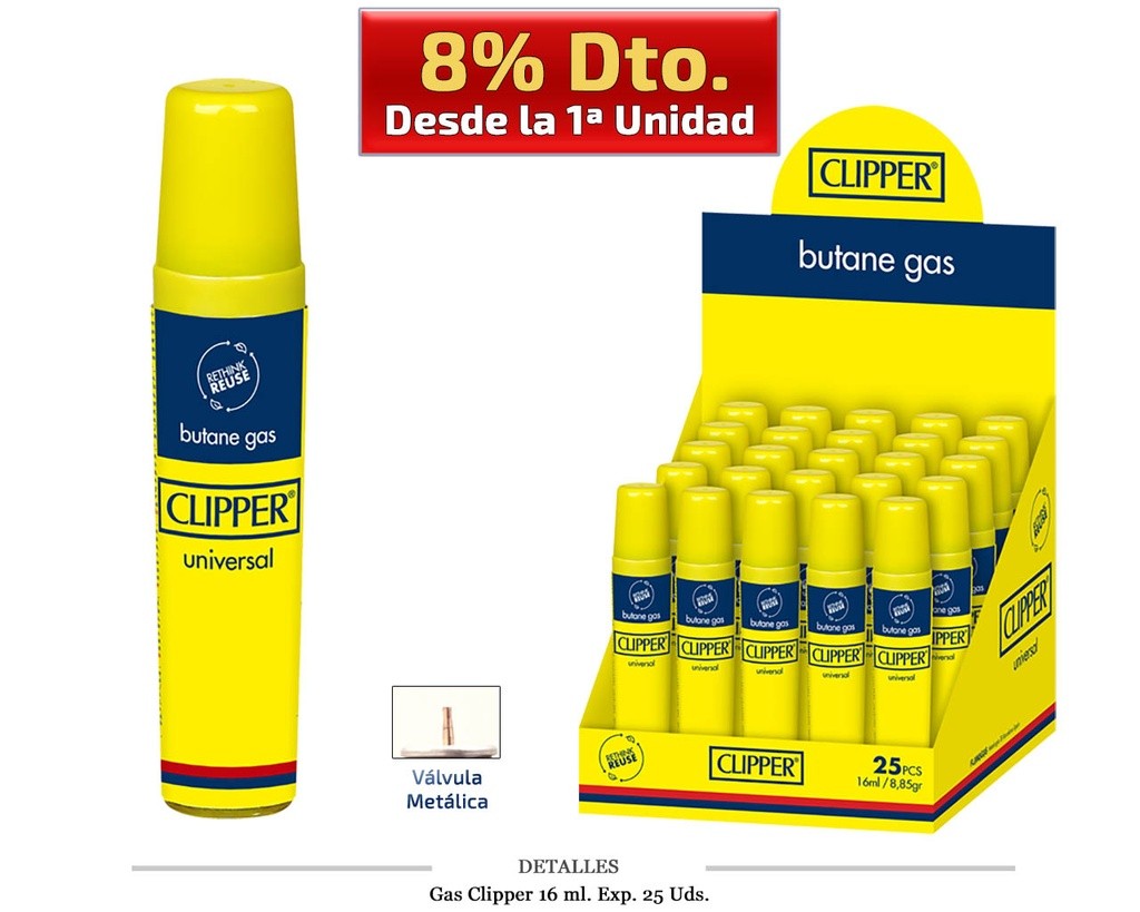 GAS CLIPPER 16 ML 25 UDS