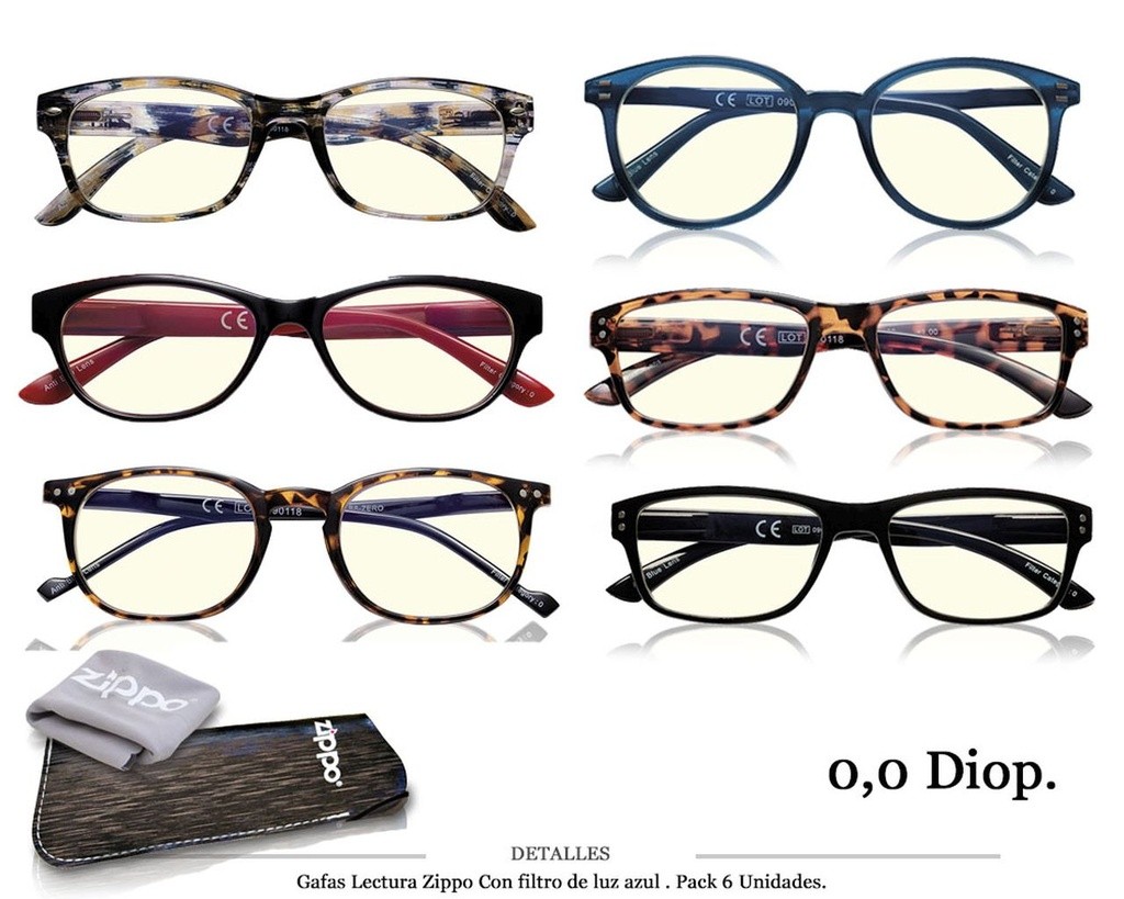 GAFAS LECT ZIPPO FILTRO PROT 0.0 DIOP PACK 6 UDS