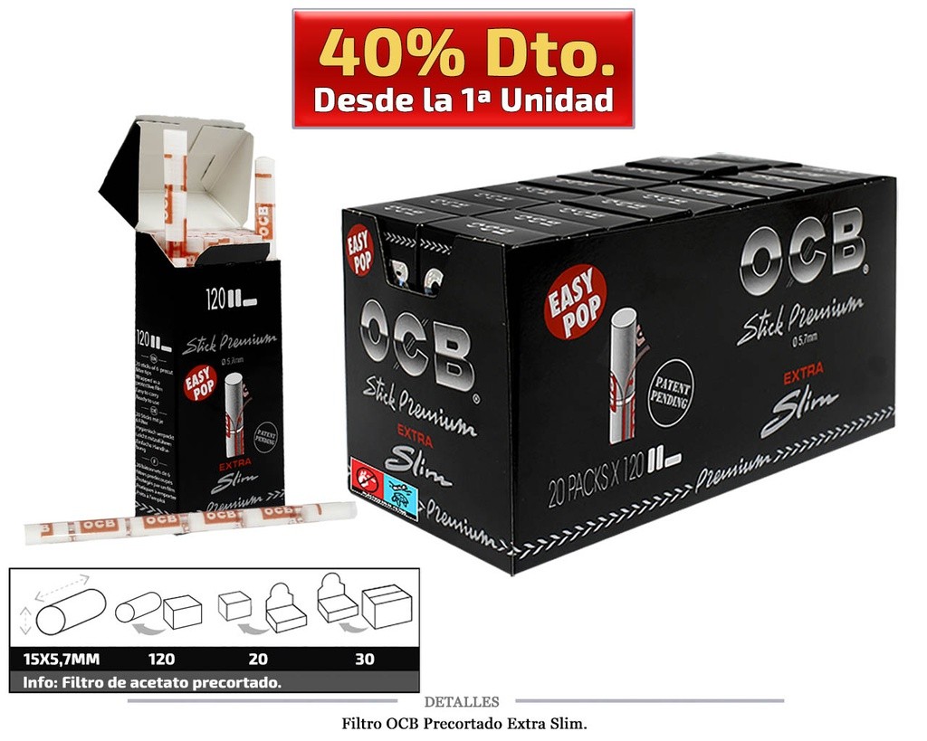 FILTRO OCB PRECUT EXTRA SLIM 5,7MM 20x120 UDS