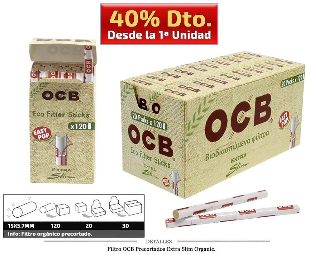 FILTRO OCB EXTRA SLIM PRECUT ORGANIC 5,7MM 20X120 UDS
