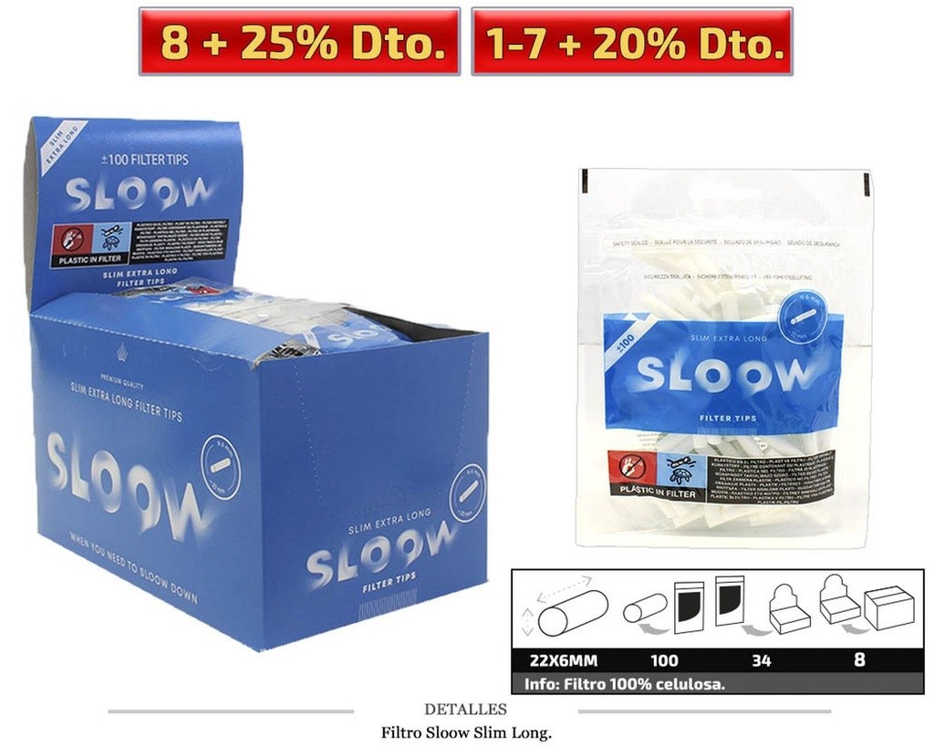 FILTRO SLOOW SLIM LONG 6MM 34X100 UDS