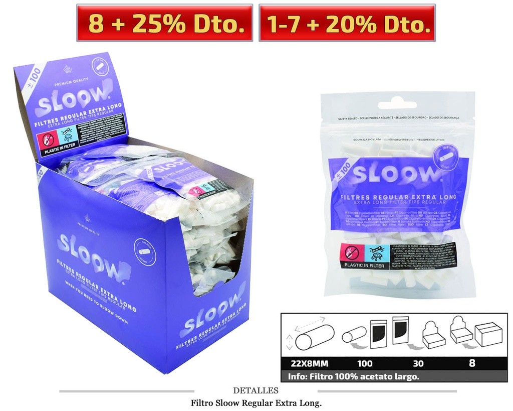FILTRO SLOOW REGULAR LONG 8MM 30X100 UDS