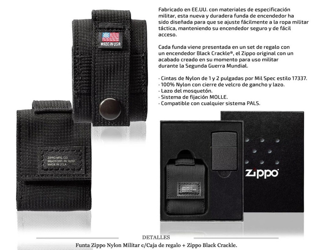 FUNDA ZIPPO NYLON MILITAR BLACK C/CAJA REGALO