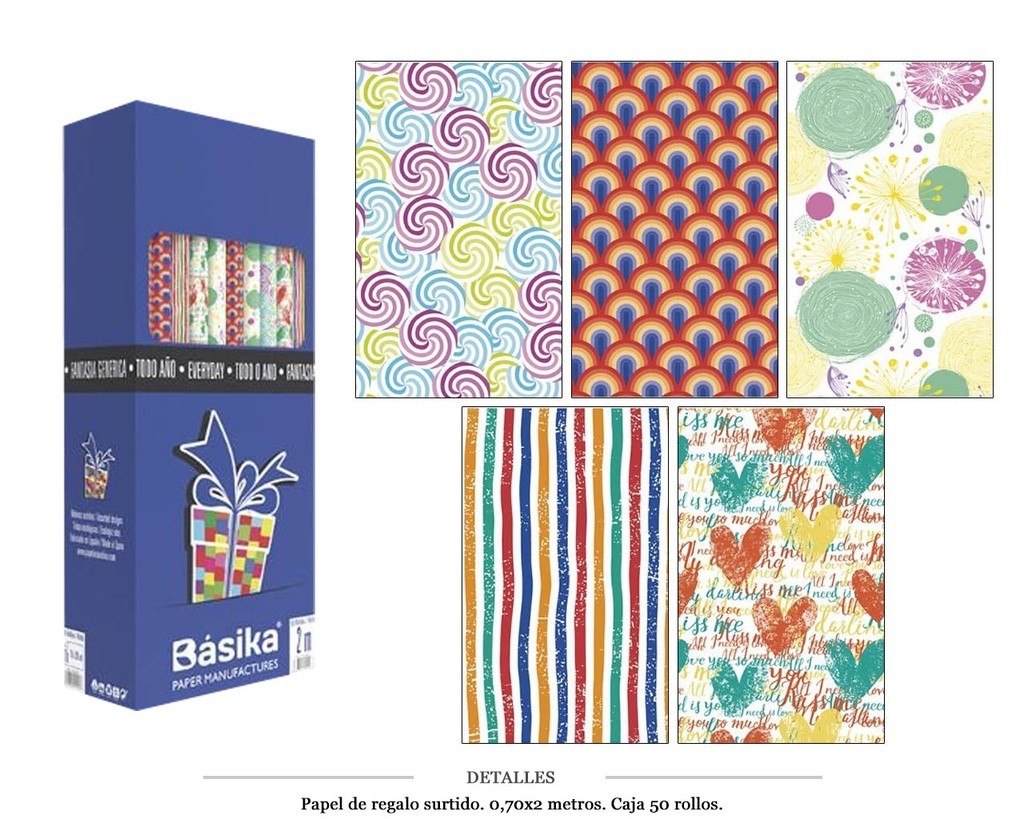 PAPEL REGALO ROLLO SURTIDO 0.70X2M 50 UD