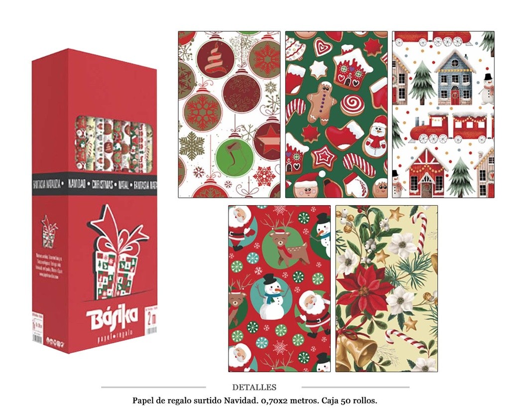 PAPEL REGALO ROLLO NAVIDAD 0.70X2M 50 UD