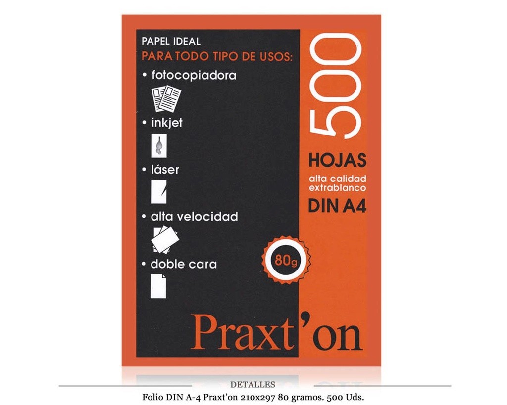 FOLIO DIN A-4 PRAXTON 210X297 80 GR 500 UDS