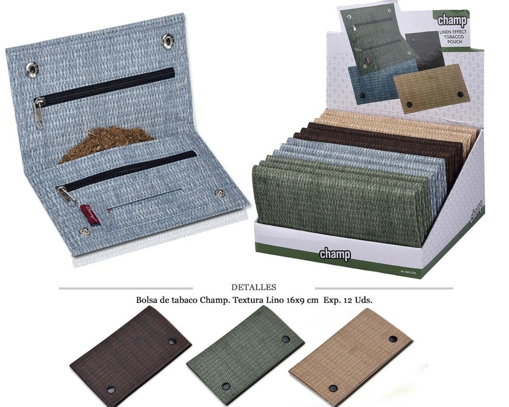 BOLSA TABACO CHAMP TEXTURA LINO 16X9 CM 12 UDS
