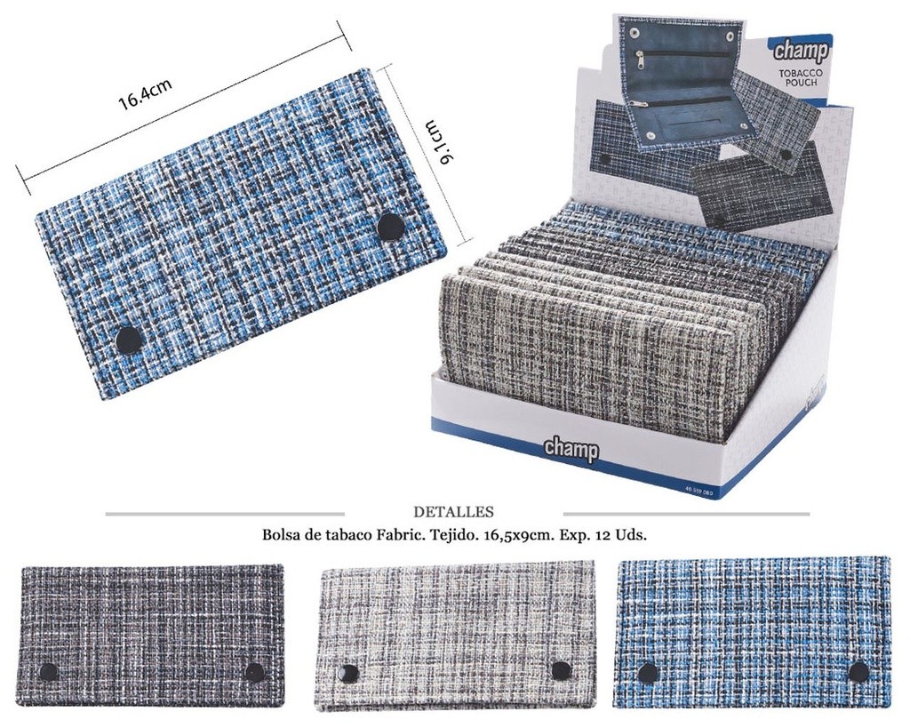 BOLSA TABACO CHAMP FABRIC 16,5X9CM 12 UDS