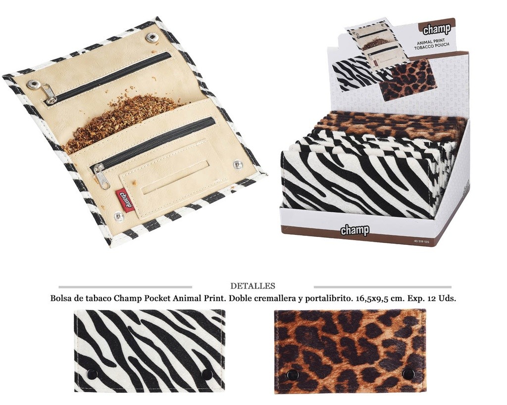 BOLSA TABACO CHAMP ANIMAL PRINT 16,5X9,5 CM 12 UDS