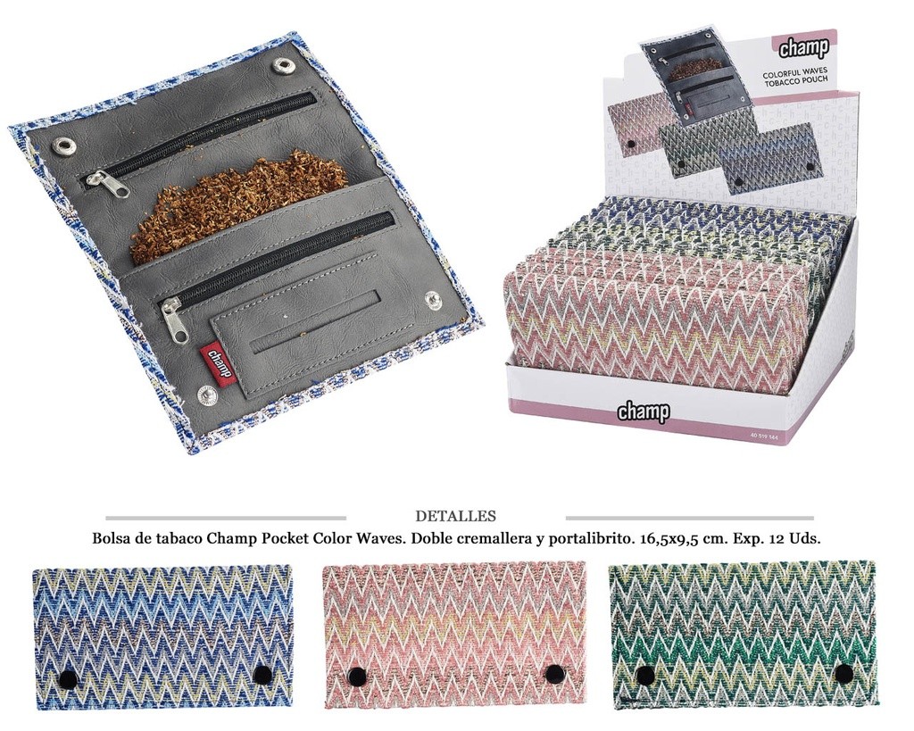 BOLSA TABACO CHAMP COLOR WAVES 16,5X9,5 CM 12 UDS