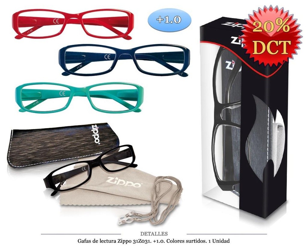 GAFAS LECTURA ZIPPO C/ FUNDA + 1.0 COL. SURT. 1 UD
