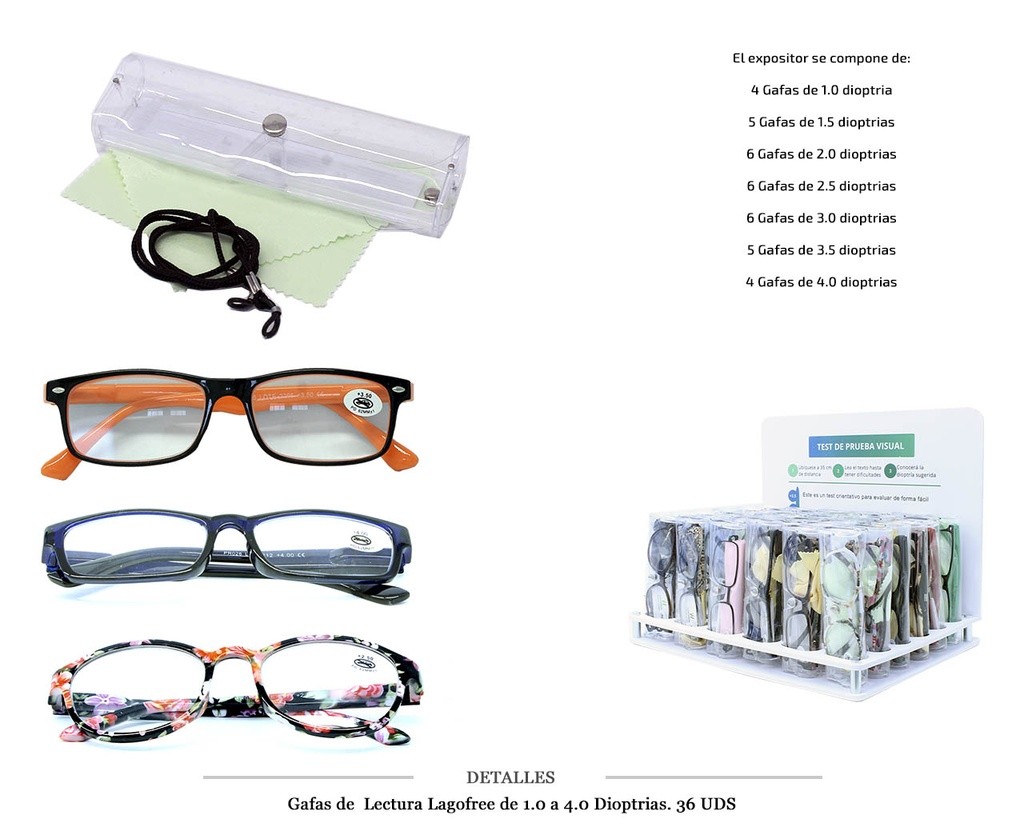 GAFAS LECTURA LAGOFREE 1.0 A 4.0 D. 36 UDS