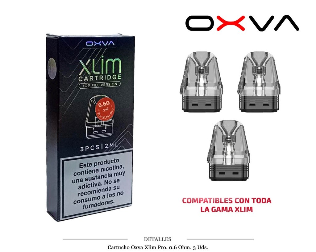CARTUCHO OXVA XLIM PRO 0,6 OHM 3 UDS